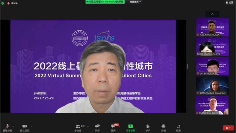 的发展历史和优势特色、暑期学校的办学宗旨以及今年的讲座主题和师生参与情况。他表示欢迎来自不同国家和地区的师生朋友,指出近几届暑期学校国际学生报名人数稳定增加,来源国家愈加丰富,充分体现了其日益增强的国际影响力。他致谢国际摄影测量与遥感学会及学生联盟在此次暑期学校筹备过程中所付出的努力,并预祝本届暑期国际学校圆满成功。