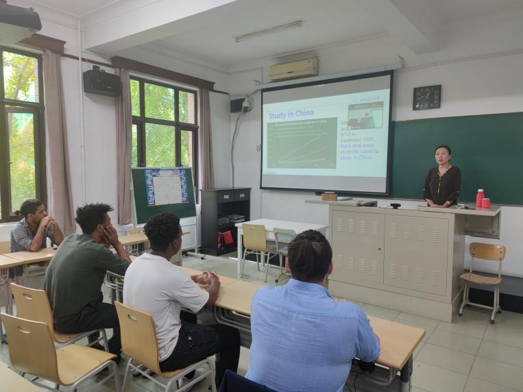 办学历程、优良的师资情况和科研资源、以及丰富多彩的校园文化活动进行了介绍,并鼓励学生们秉持实事求是、精益求精的校训精神,珍惜时光,充分利用学习资源,积极与老师沟通;尊重文化差异,努力成为兼具中国情怀和国际视野的高素质专业型人才,成为促进各国人民民心相通的文化桥梁。