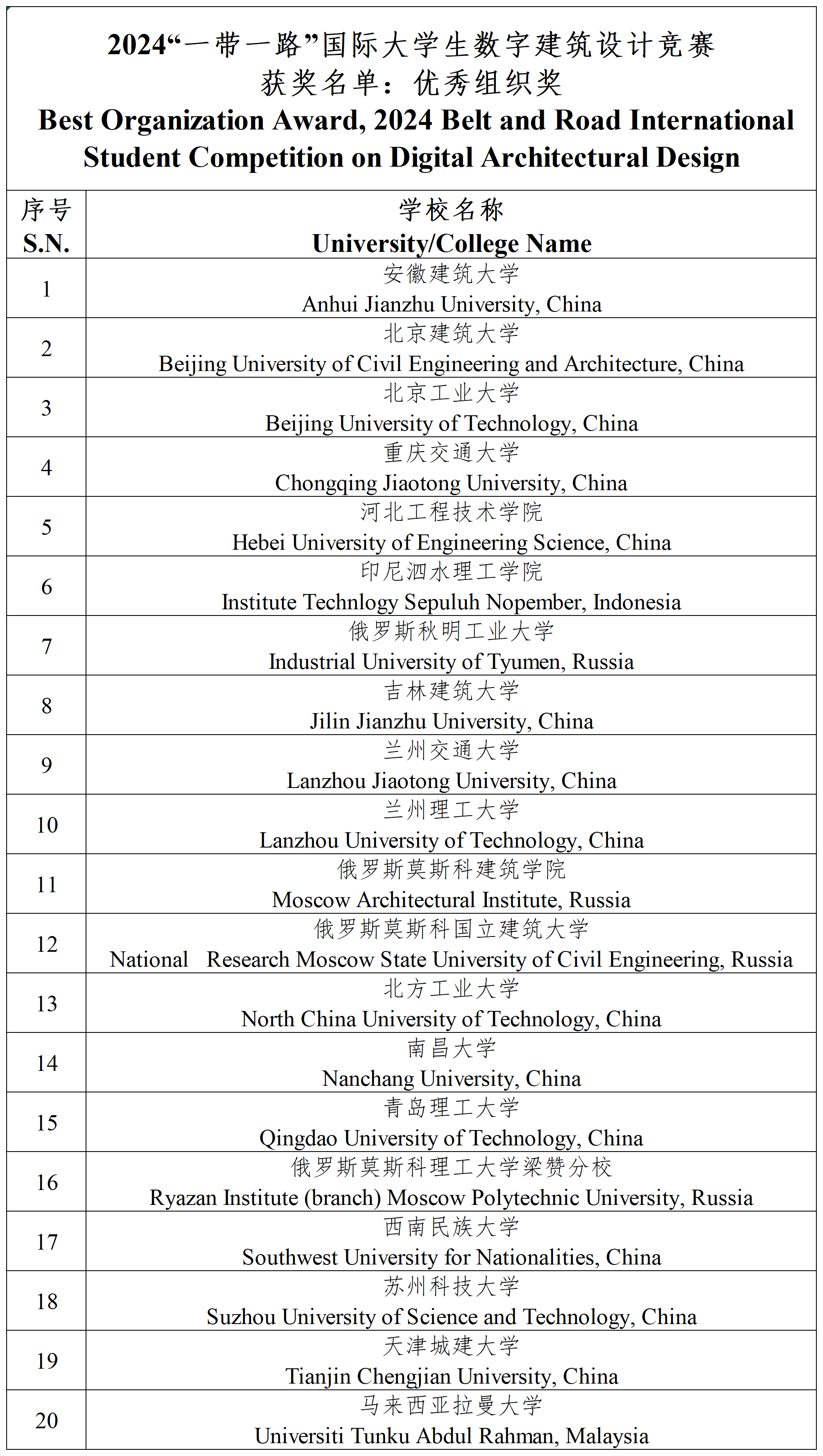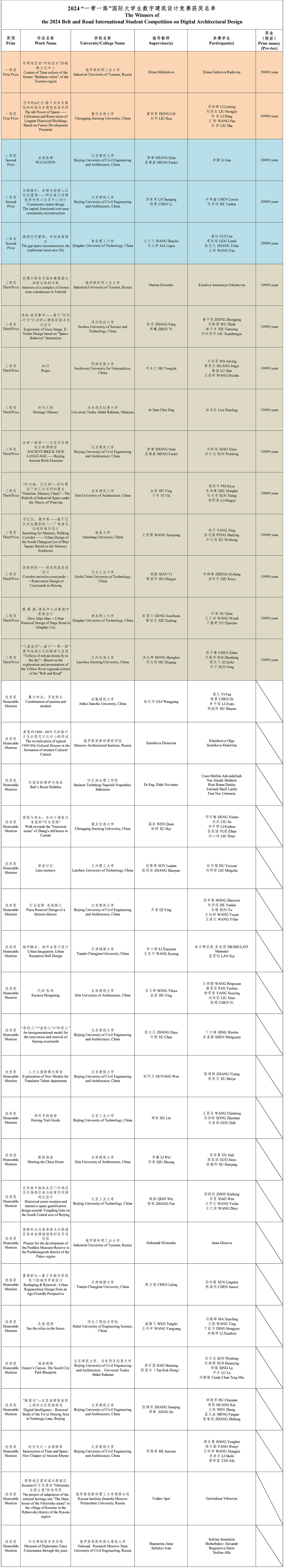Winners for the 2024 Belt and Road International Student Competition on Digital Architectural Design