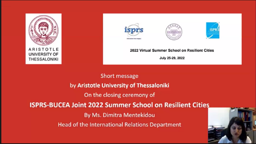 希腊塞萨洛尼基亚里士多德大学国际关系部部长 Dimitra Mentekidou在发言中祝贺本届暑校的成功举办并感谢主办方的精心组织与热情邀请。她介绍了亚里士多德大学的情况,并感谢本次暑期学校为各国学生提供国际化研学氛围。她期待继续加强两校之间的联系与合作。
