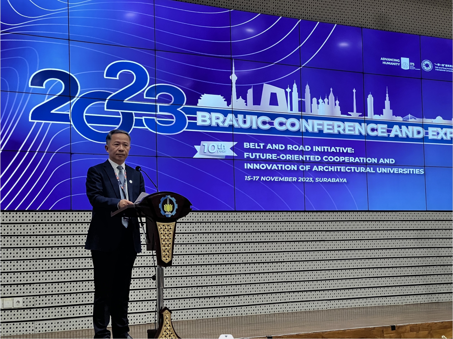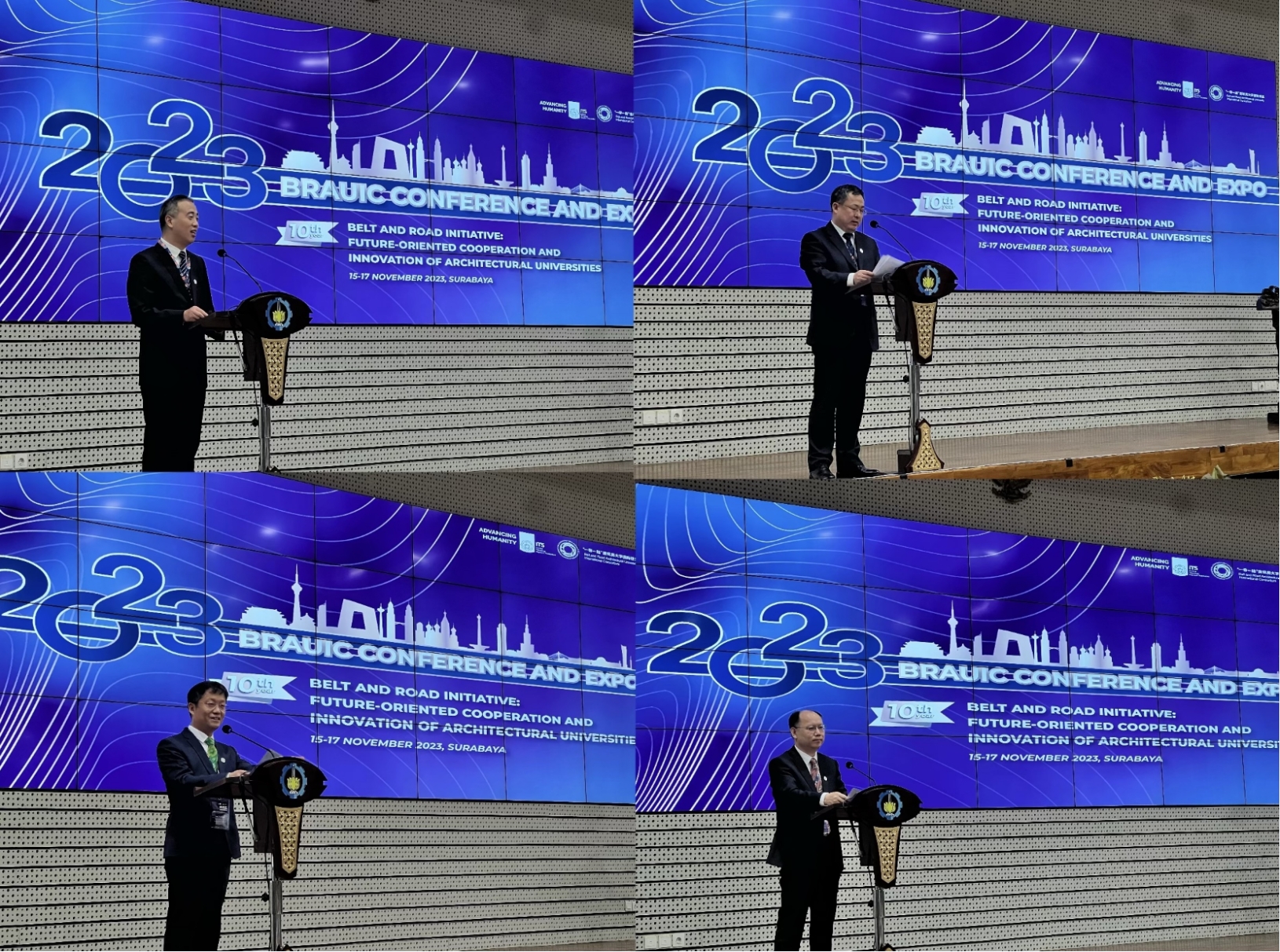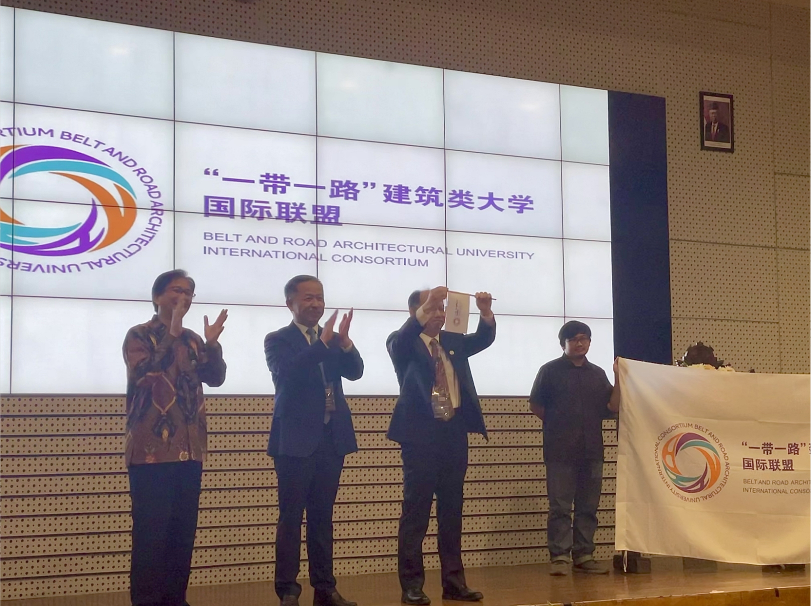 合作与创新”为主题,由预备会、联盟大会、“智慧城市”管理教育科技创新展览、联盟成员校际协议签约仪式及若干场双边活动组成。来自国内外30余所高校和机构的代表百余人线上线下齐聚“21世纪海上丝绸之路”提出地点印度尼西亚,共同总结“一带一路”教育合作成果,谋划未来建筑类创新型人才培养行动方向,推动更高层次的多边和双边合作。作为联盟主席,校长张大玉率团出席并主持相关会议及交流活动。