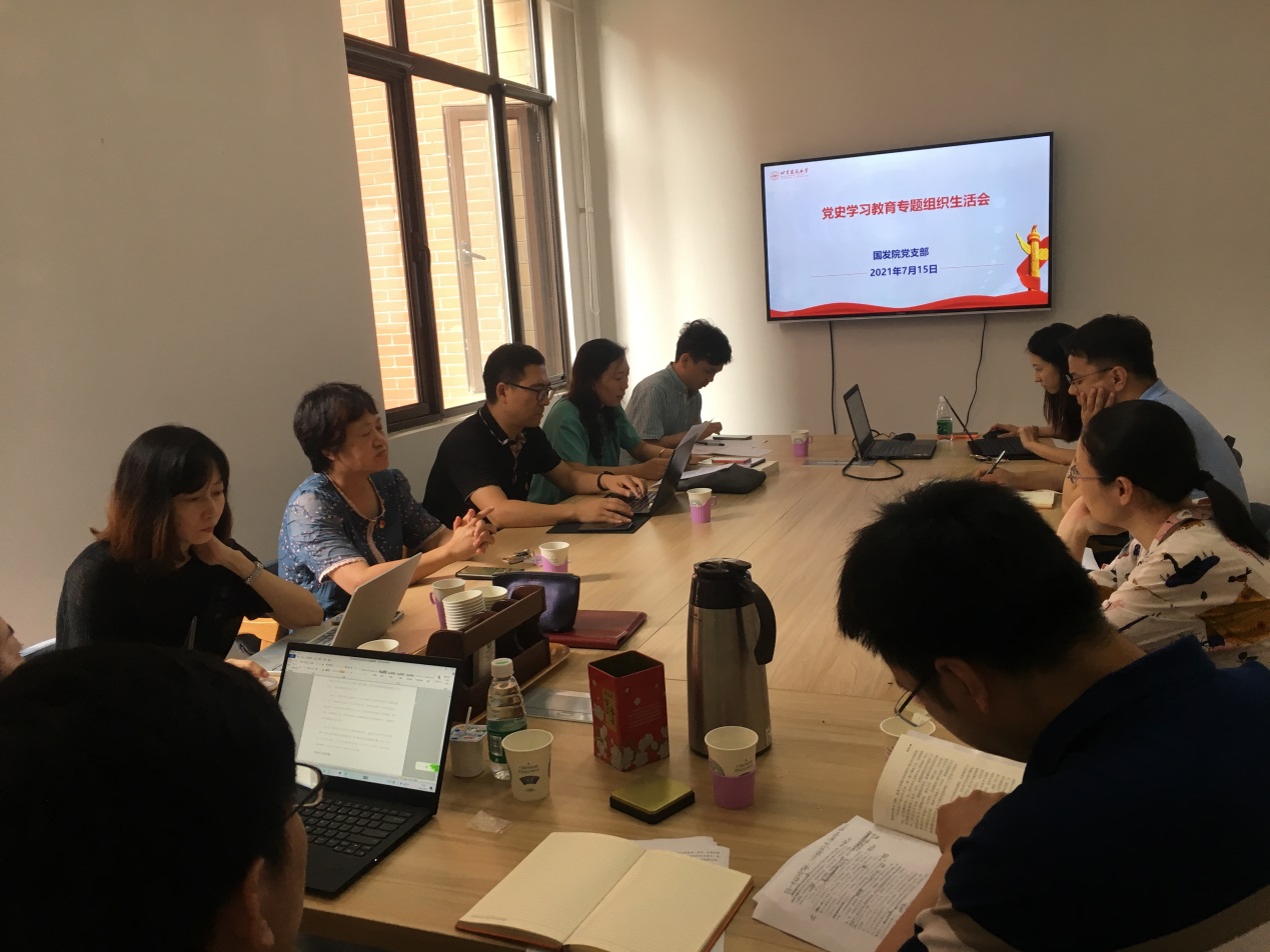 国发院党支部于7月15日下午召开了党史学习教育专题组织生活会,支部全体党员一起围绕“学党史、悟思想、办实事、开新局”主题,认真贯彻“学史明理、学史增信、学史崇德、学史力行”要求,从百年党史中汲取奋进力量。