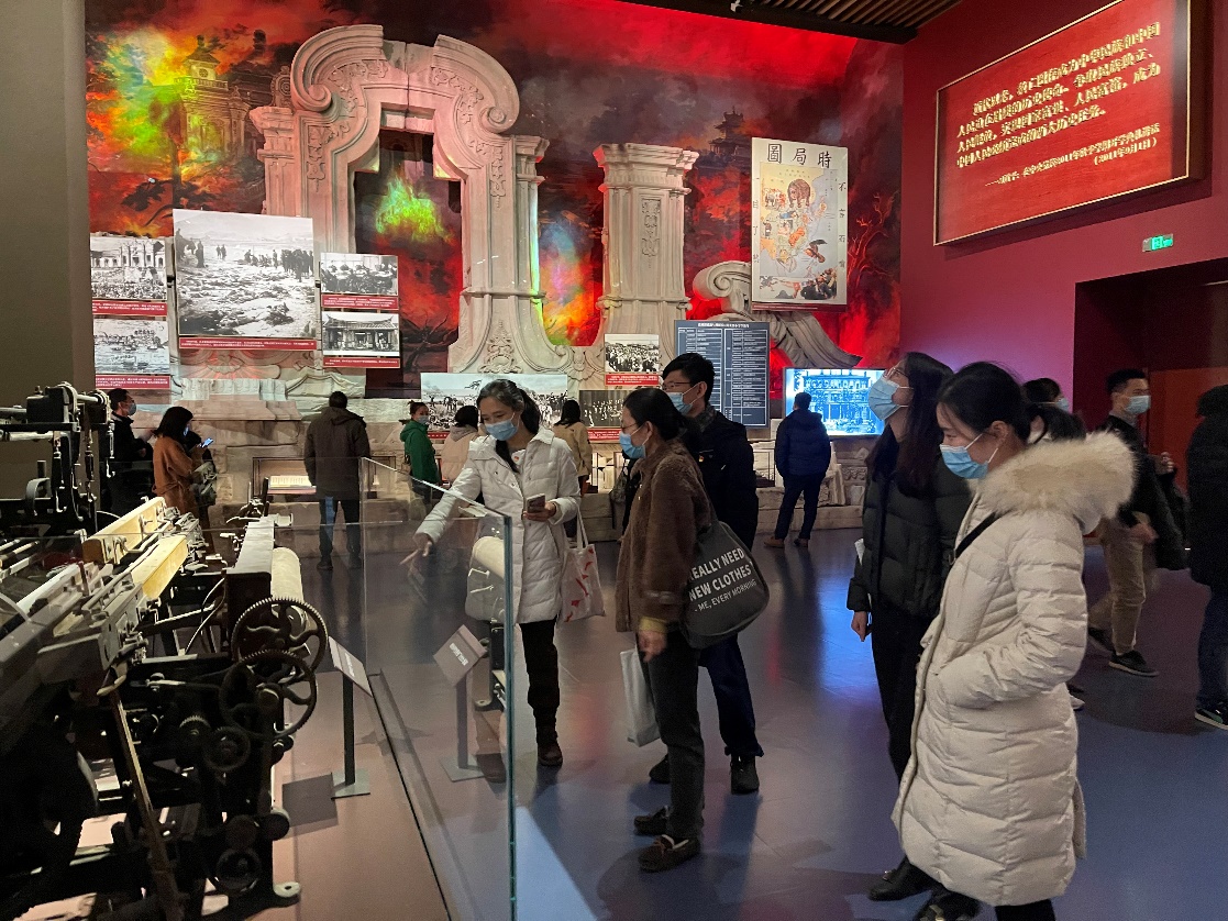 中国共产党历史展览馆系统、直观地记录了党的百年光辉历程,是学习党史的实践课堂。整个展览以“不忘初心、牢记使命”为主线,精心设计了“建立中国共产党 夺取新民主主义革命伟大胜利”“成立中华人民共和国 进行社会主义革命和建设”“实行改革开放 开创和发展中国特色社会主义”“推进中国特色社会主义进入新时代 全面建成小康社会开启全面建设社会主义现代化国家新征程”4个部分。大家仔细聆听讲解,观看图片和文物实物,全方位了解中国共产党波澜壮阔的百年历程,深刻感悟其中蕴含的伟大精神,共同追寻共产党人的初心与印迹。