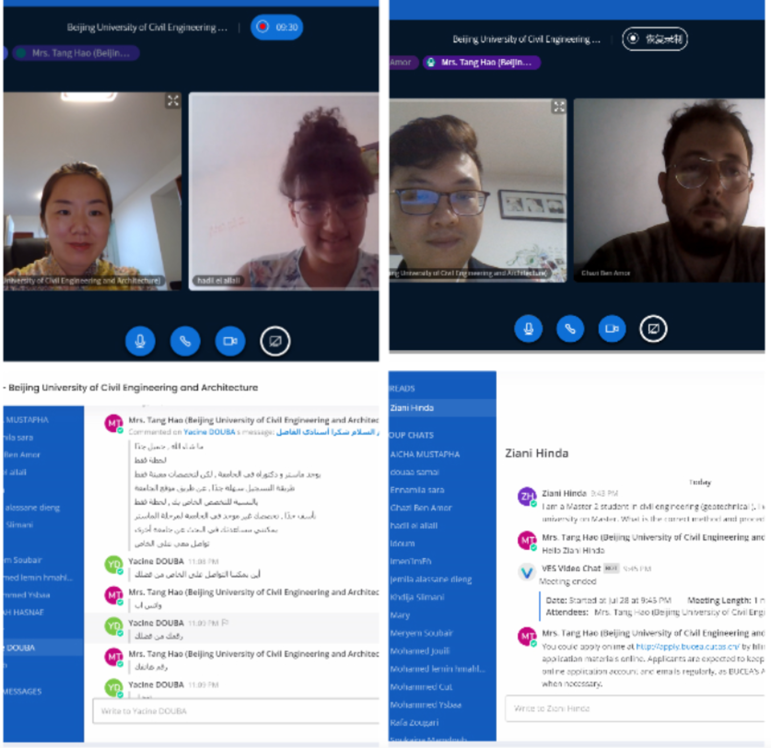 Despite the difficulties of time difference, teachers of BUCEA gave high-intensity lectures online for two nights totaling 12 hours, introduced the general overview of BUCEA, policies related to international students, and academic disciplines and majors to North African students by means of video link, voice call, and online Q&A, and also answered questions from students about their major choices, tuition and scholarship policies as well as language requirements.