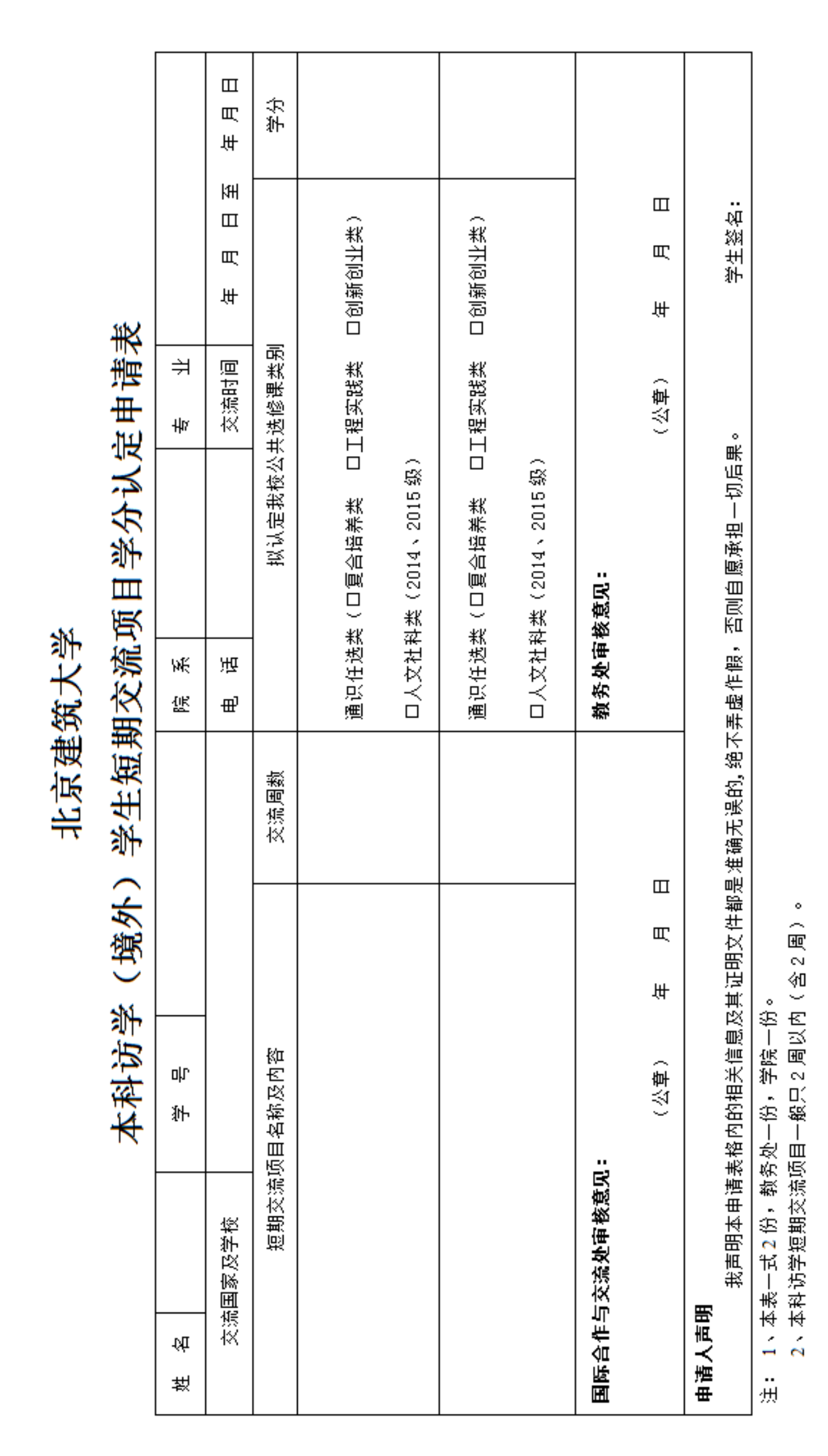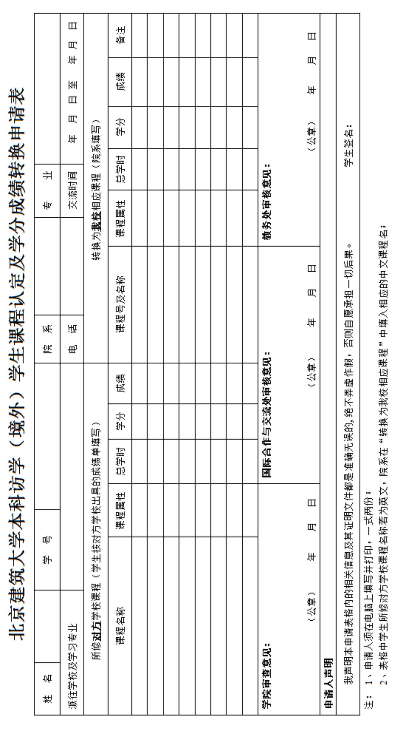 本科访学(境外)学生课程认定及学分成绩转换申请表》,学院审查无误签字盖章后,将成绩单复印件(一份)交教务处审核、备案。