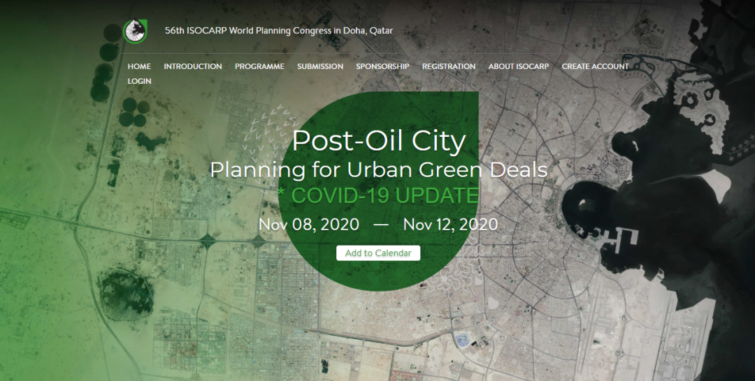 国际规划师学会(ISOCARP)第56届世界规划大会将于2020年11月8-12日于卡塔尔首都多哈市举行,会议的主题是“后石油时代城市:为城市绿色发展而规划”(Post-Oil-City: PLANNING FOR URBAN GREEN DEALS),目前正面向全球征集论文摘要。