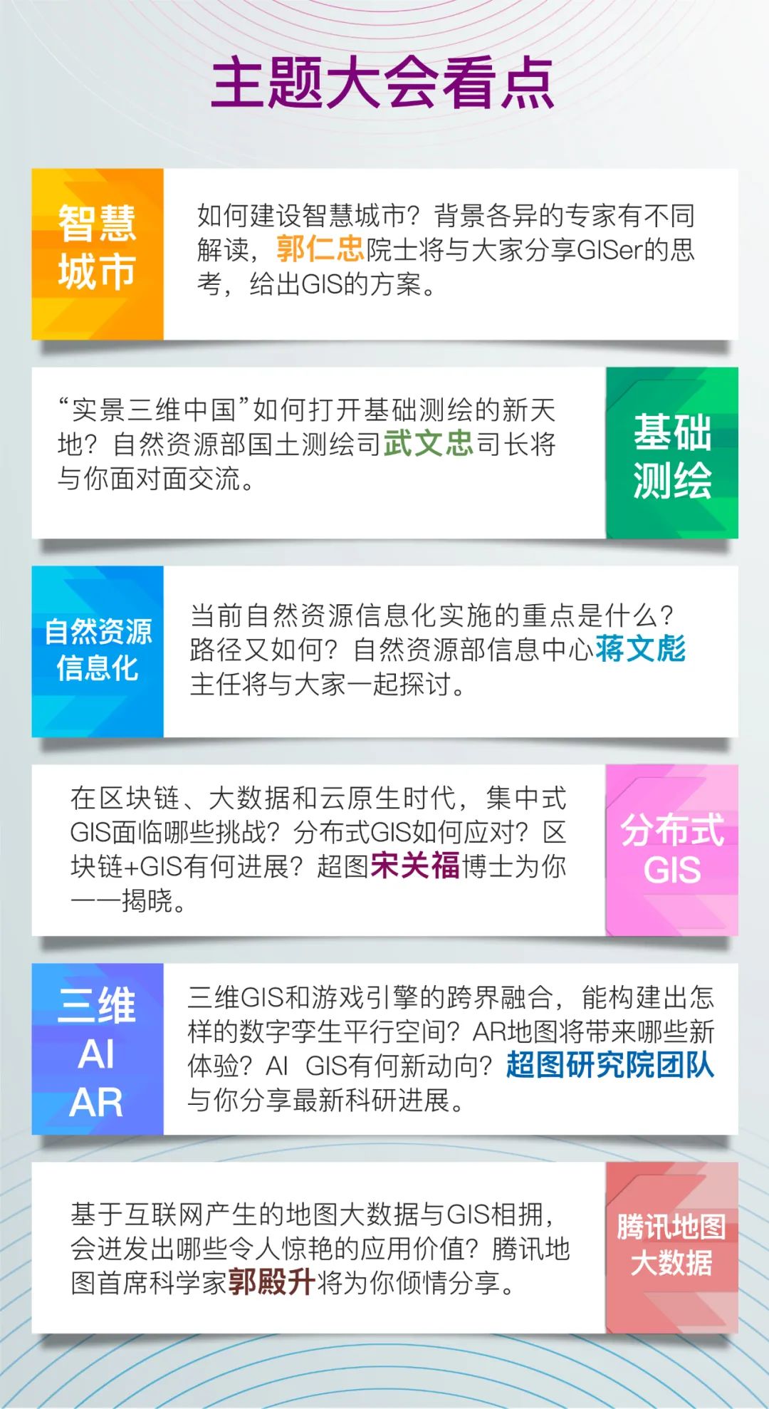 参会有礼:注册成功并在主题大会或分布式会场现场签到,我们都将赠送《大数据地理信息系统原理、技术与应用》书籍等资料,欢迎大家参会领取!