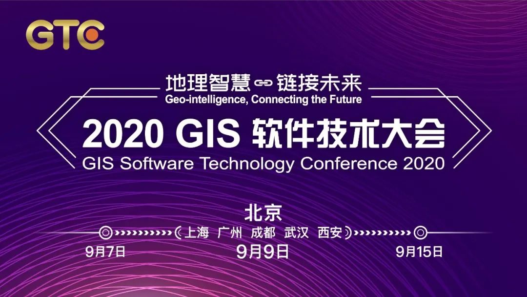 9月9日,2020 GIS 软件技术大会(以下简称GTC 2020)将在北京国际会议中心召开主题大会。大会以“地理智慧 链接未来”为主题,聚焦地理信息技术与区块链、大数据、人工智能等技术的融合创新,分享GIS软件最新进展、交流GIS应用最佳实践。同日,GTC 2020 在上海、广州、成都、武汉、西安将设置5大线下分布式会场,增加更多区域内容,并转播主题大会。