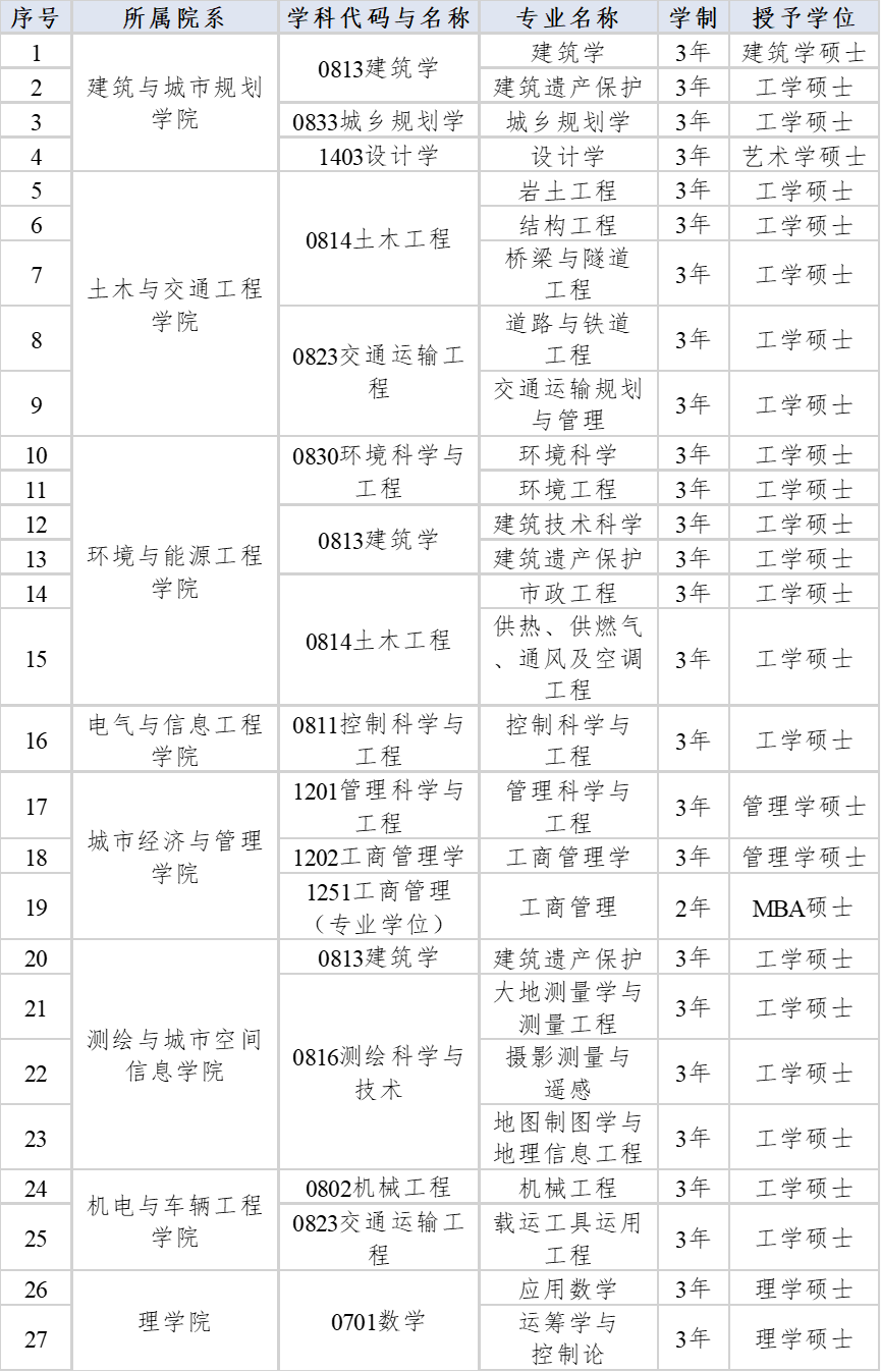 (2)城乡规划学专业接收城市规划、建筑学、风景园林专业的考生。