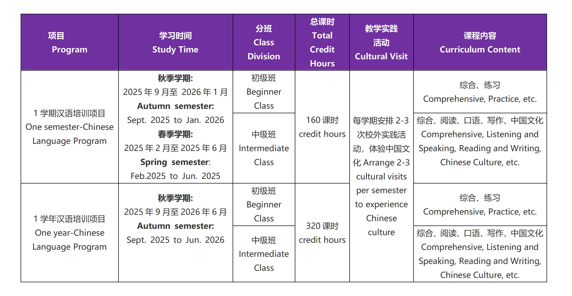 汉语培训项目Chinese Language Training Program
