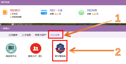 02在信息门户色情短剧的“办公业务”里点击进入“新外事系统”