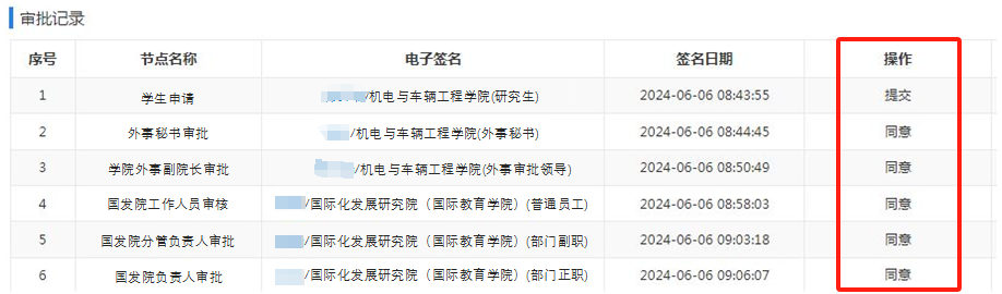 05当学院及国发院审批通过后即表示审批系统流程结束,后续提交总结及奖学金申请环节无需通过系统操作。待同学们完成境外交流项目回国后7日内,提交护照出入境记录复印件和参与项目总结(不少于1000字),发送至邮箱[email protected]。