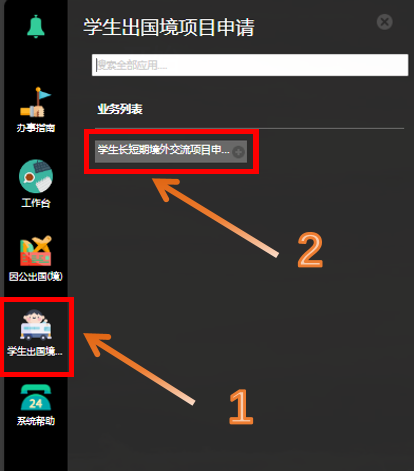03然后点击左侧的“学生出国境项目申请”,再点击“学生长短期境外交流项目申请表”