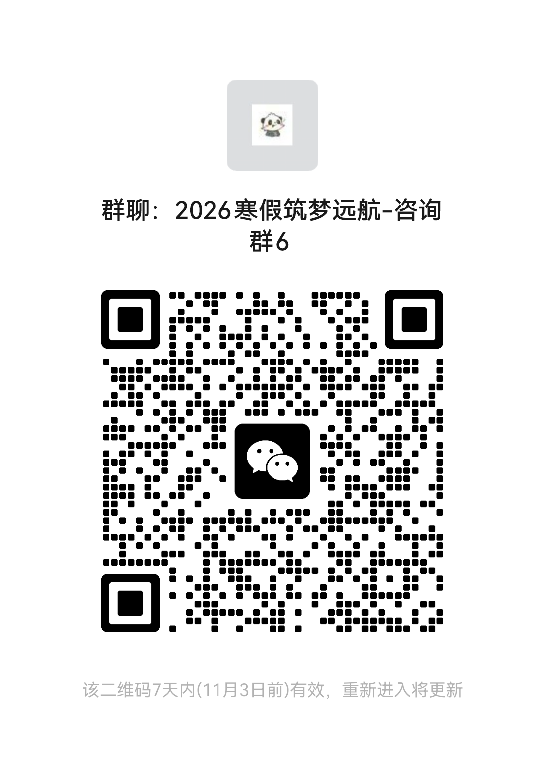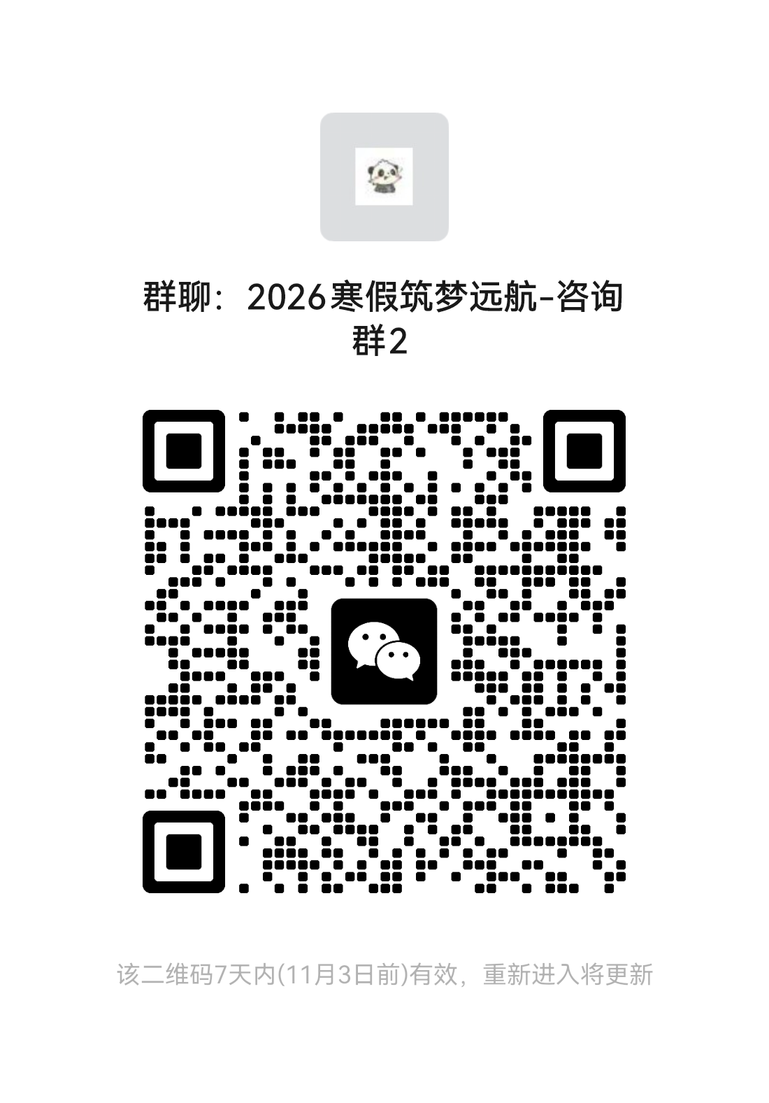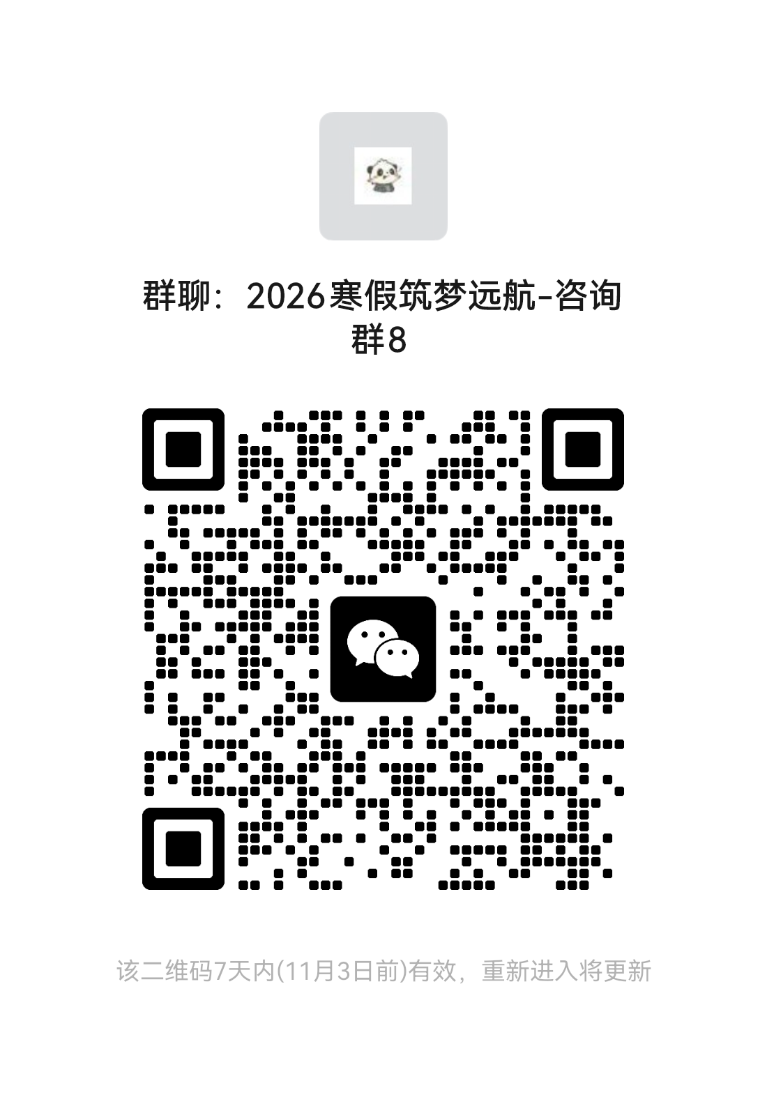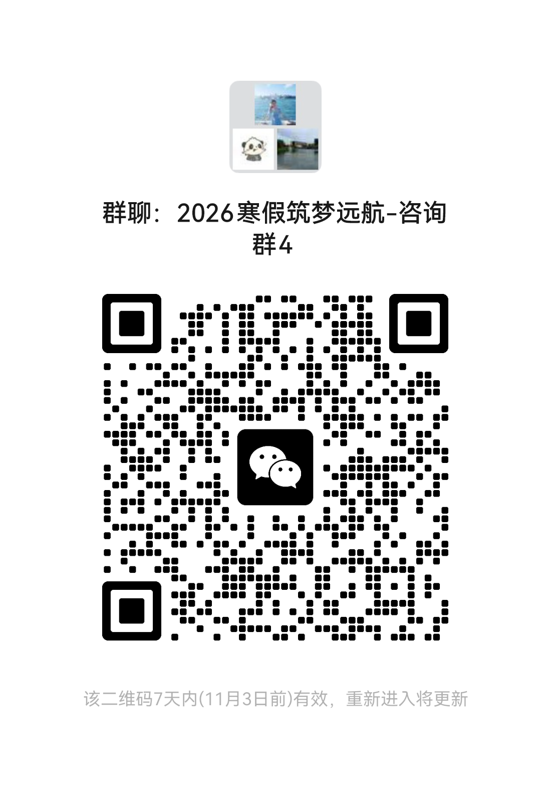 有意愿报名学生请扫描下方二维码进入咨询群,获取项目详细资料。