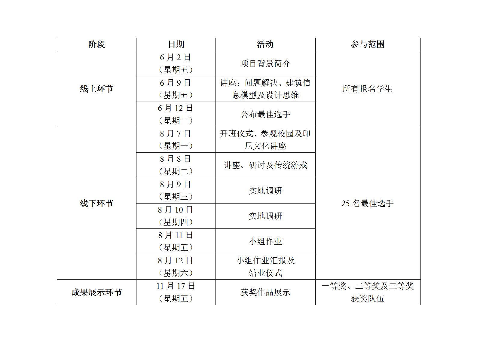1、线下环节及成果展示环节地点为印度尼西亚泗水理工学院。