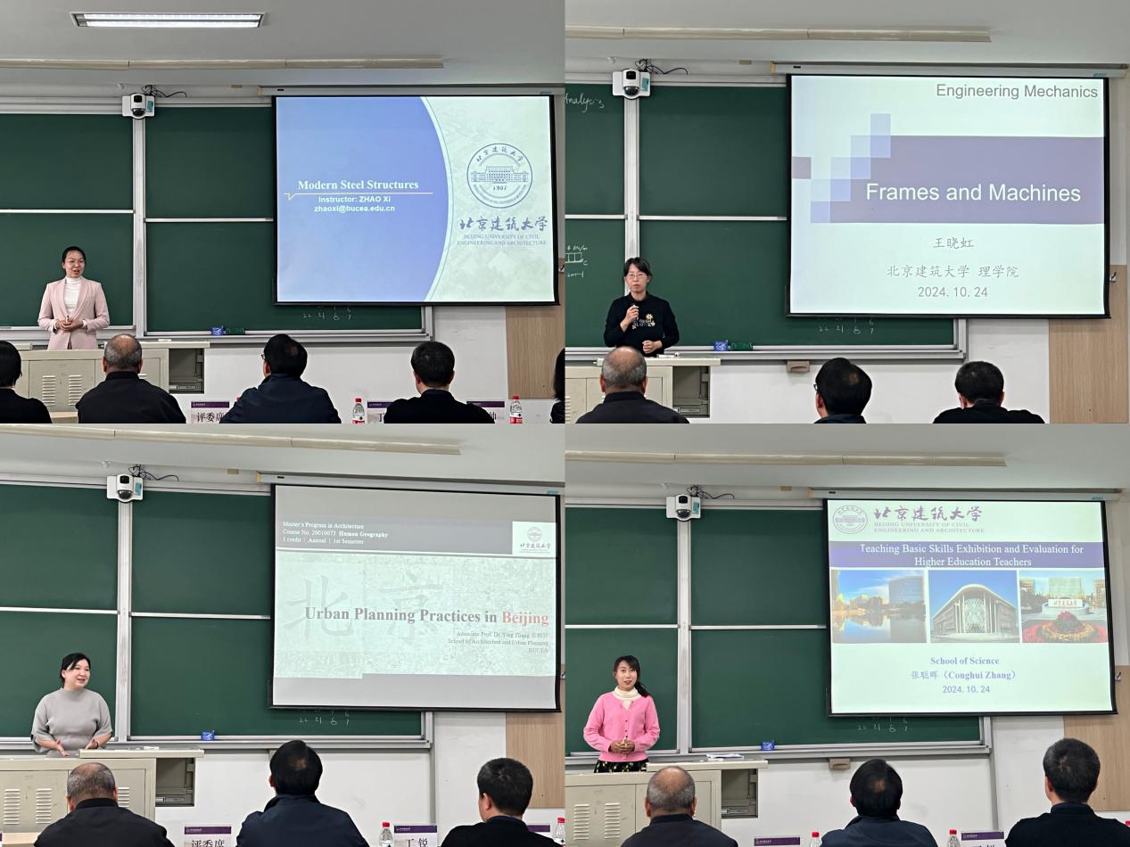 经自愿报名、学院推荐、教案和教学PPT评审等环节,来自建筑学院张颖异、土木学院赵曦、理学院张聪晖、王晓虹进入到最终的教学基本功展评环节。4位教师用全英文语言,通过精心的教学设计、丰富的教学内容、准确的教学方法,围绕擅长的专业课程,展现了优异的教学素养和专业水平。