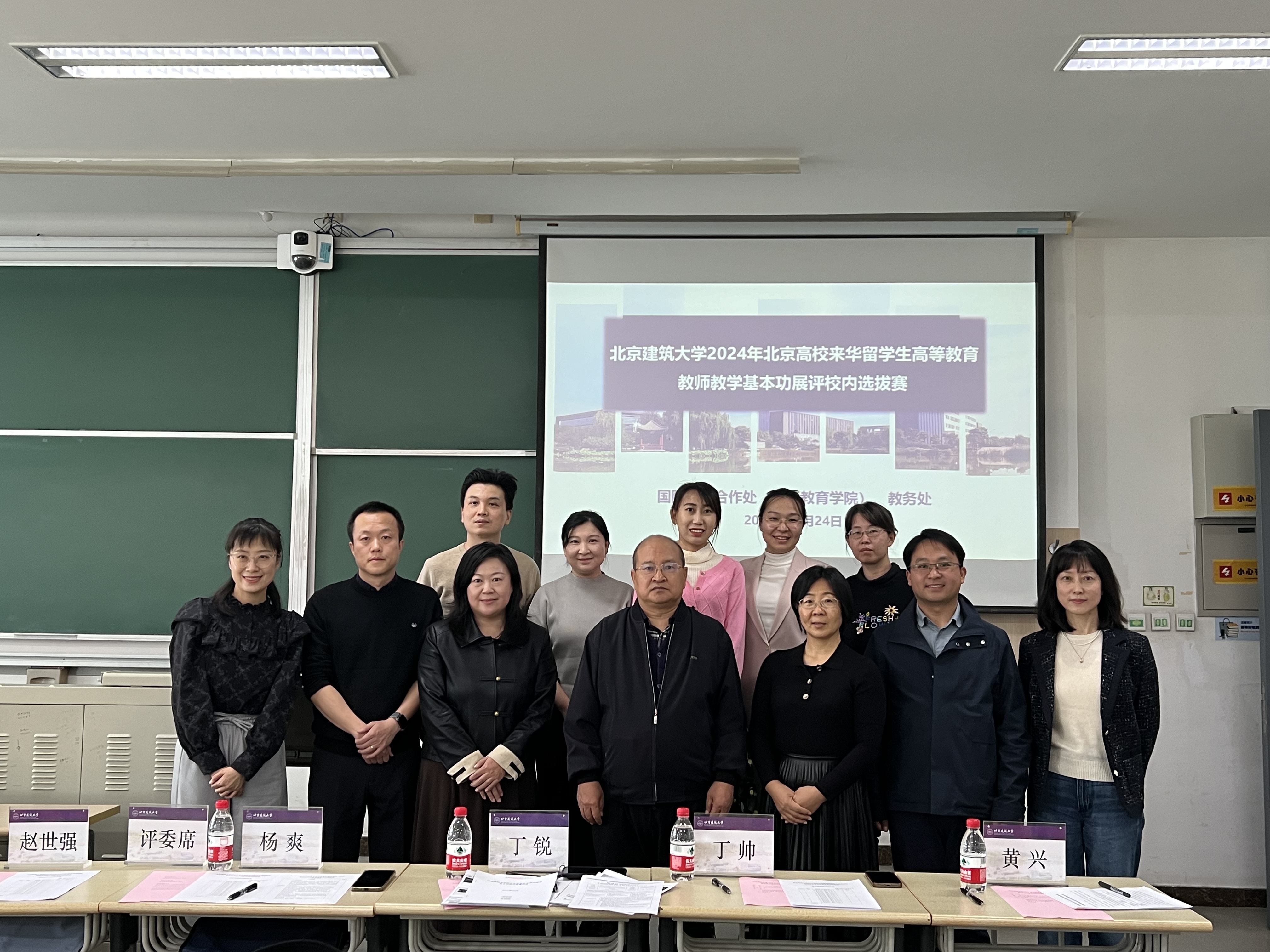 、北方工业大学、首都医科大学国际教育学院负责人、校督导组专家、北京市青教赛获奖者构成,在提问交流环节中,评委们从教学内容的准确性、教学方法的创新性、课堂互动的有效性等多个维度与参赛教师深入交流。