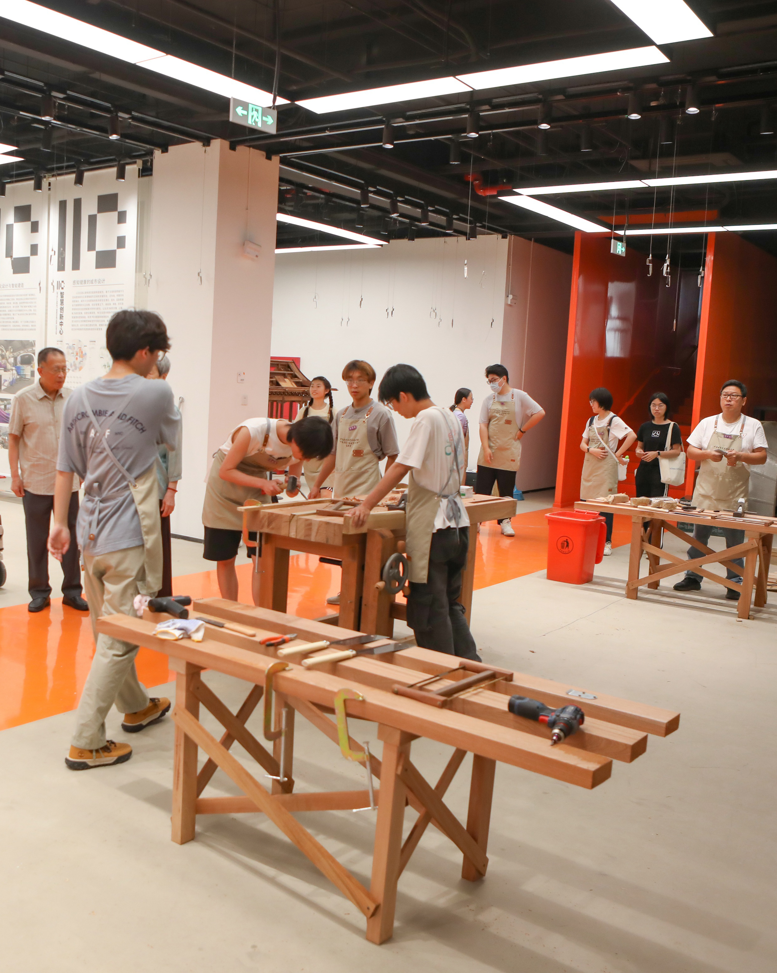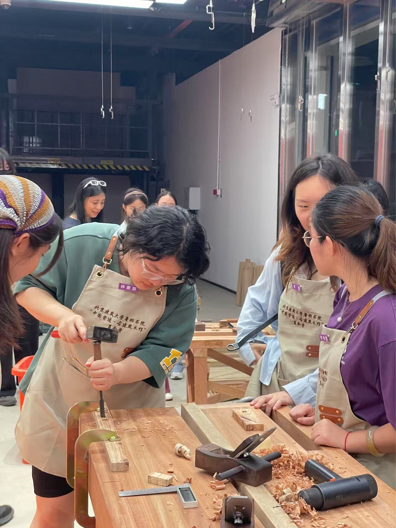 最后,夏令营的教师、营员、观摩团成员依次进行了自我介绍并表达了对参加夏令营的期待。全体人员共同参观了古建筑木作工坊,对即将开展的课程内容和实操环节进行了初步了解。