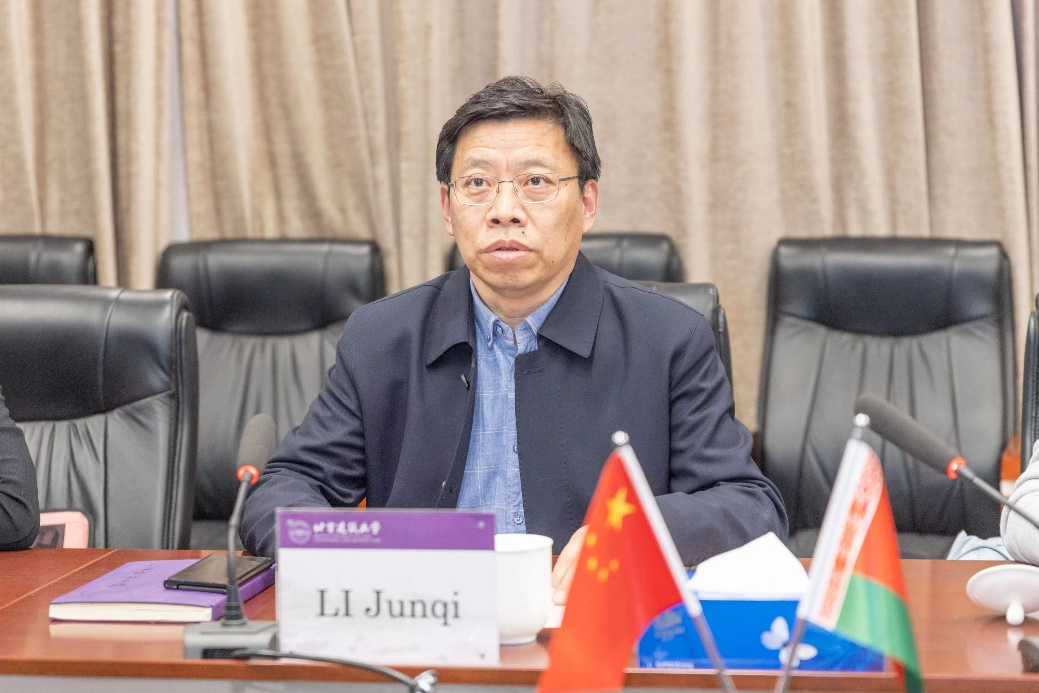 与白俄罗斯国立经济大学召开线上合作洽谈会。党委常委、副校长李俊奇,白俄罗斯国立经济大学副校长莫罗泽维奇出席;会议由国际化发展研究院(国际教育学院)特聘院长蒋捷主持,国发院和经管学院相关人员一同参会。