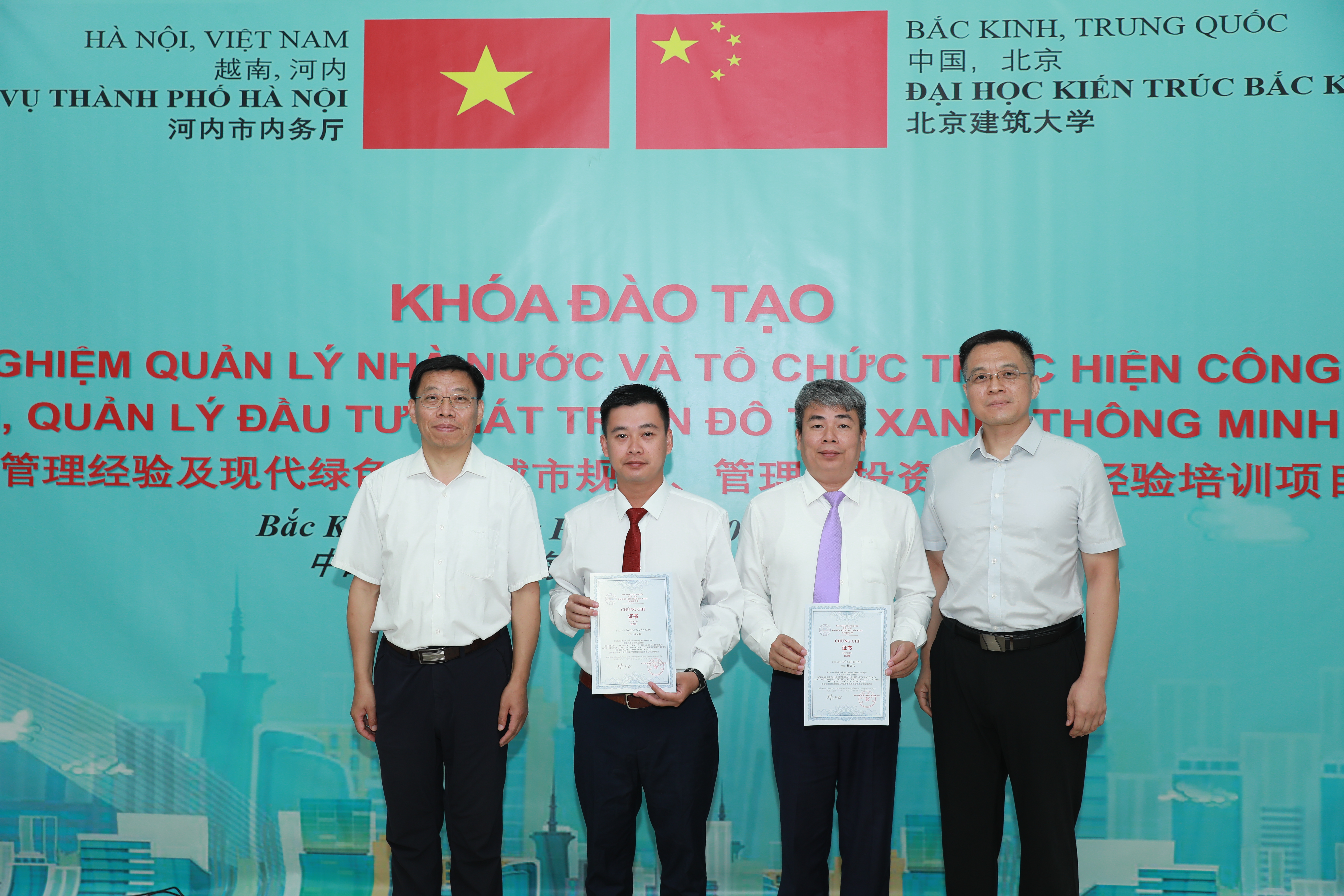 党委常委、副校长李俊奇出席结业仪式并致辞;国际交流合作处(国际教育学院)、北京建大资产经营管理有限公司、北京北建大科技园发展有限公司等相关部门人员及越南河内市政厅等22位公职人员一同参会。结业仪式由北京建大资产经营管理有限公司党委书记、董事长黄尚荣主持。