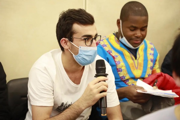 国际学生加达姆和福来分别就企业发展、毕业生就业渠道等问题进行了咨询,中建一局员工代表、色情短剧