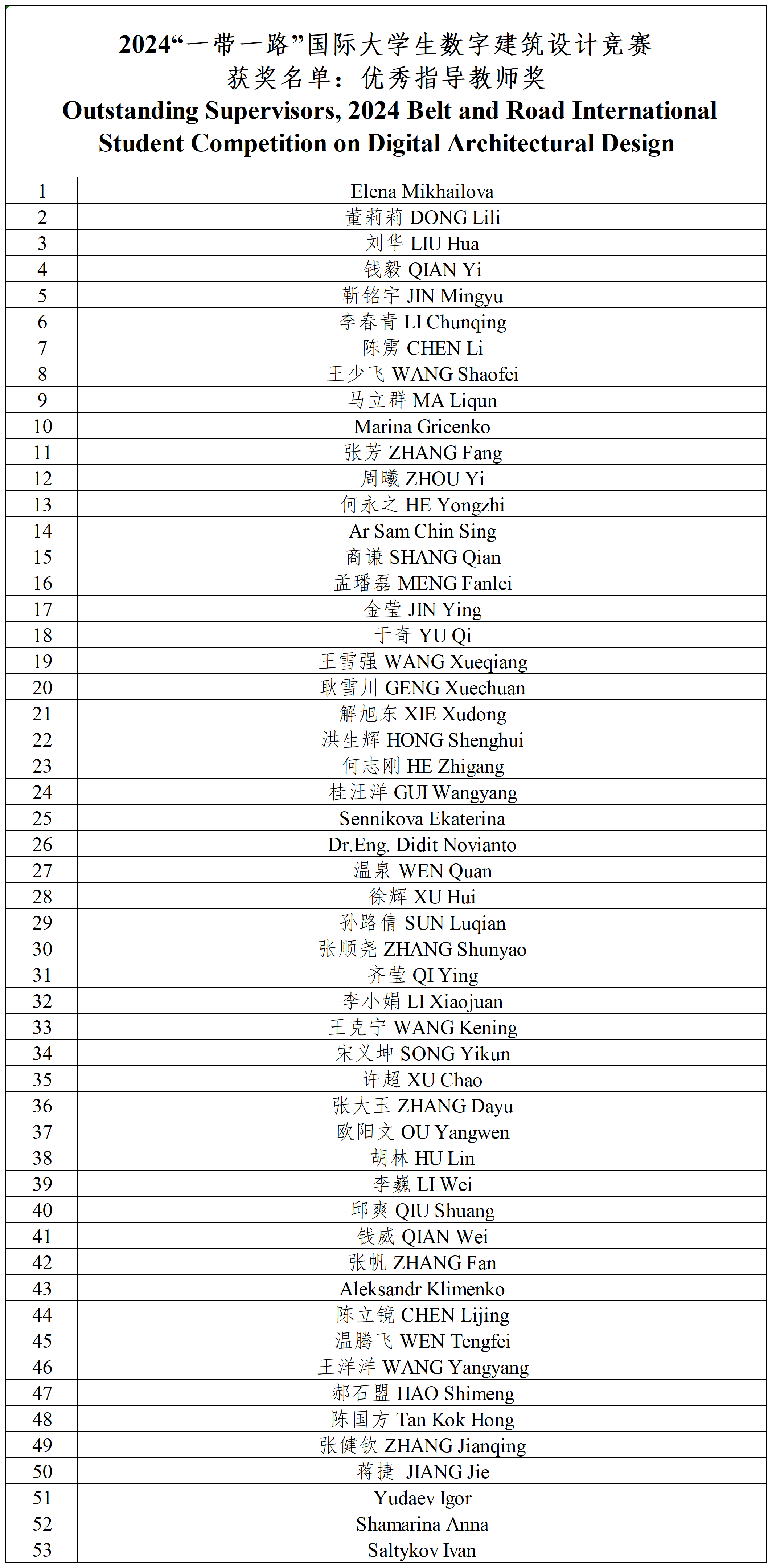 Winners for the 2024 Belt and Road International Student Competition on Digital Architectural Design