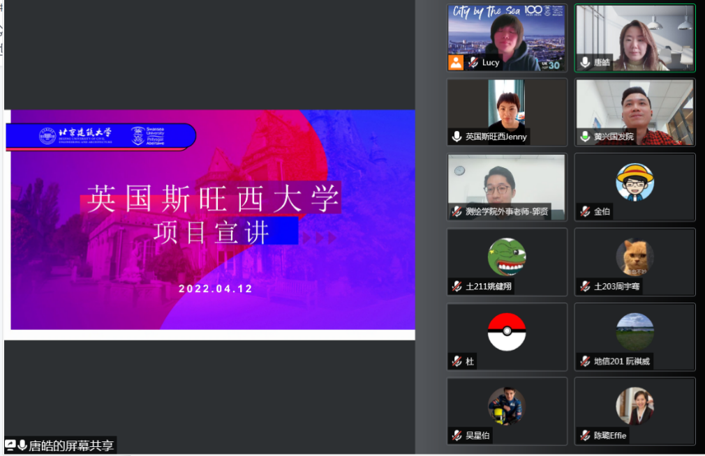 与英国斯旺西大学联合培养项目线上宣讲会,土木学院、测绘学院的部分师生参加。