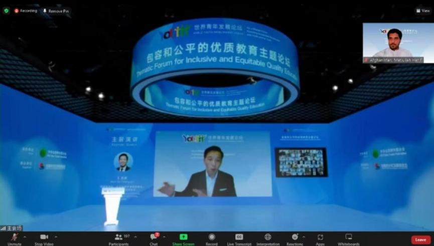 World youth development forum was held on July 21th to 23th and the focusing areas were employment and entrepreneurship, climate changes, inclusive and equitable quality education and digital economy. At the opening ceremony, some participants made speeches and expressed their opinions, I am glad to have a chance to make a shot speech, that is actually a great opportunity to share my country’s educational concerns with youths from different countries.