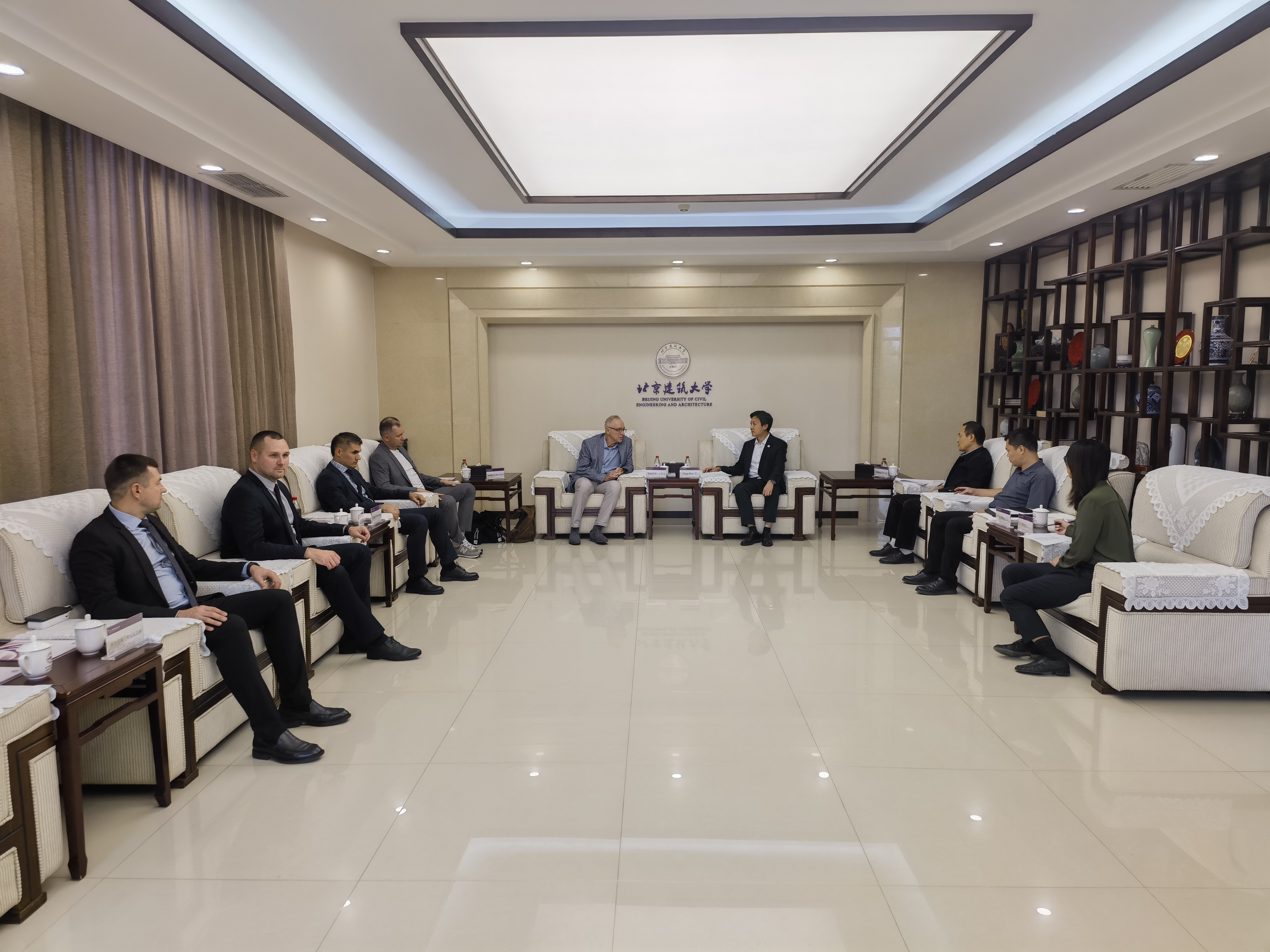 伊廷华对古泽夫院士一行的到访表示热烈欢迎,并介绍了学校的历史沿革、办学特色、以及在服务首都城乡建设等方面的标志性成果。他表示,俄罗斯彼尔姆国家研究型理工大学在现代化城市规划、能源开发等学科领域特色突出,与北建大学科布局和发展愿景高度契合。自2023年两校开展交流以来,已在联合培养与科研合作方面取得积极进展,期待以此次访问为契机,进一步推动双方在本硕博多层次人才联合培养、联合申报国际合作项目、推动科技成果转化与应用等领域的务实合作,共促中俄高等教育交流深化。