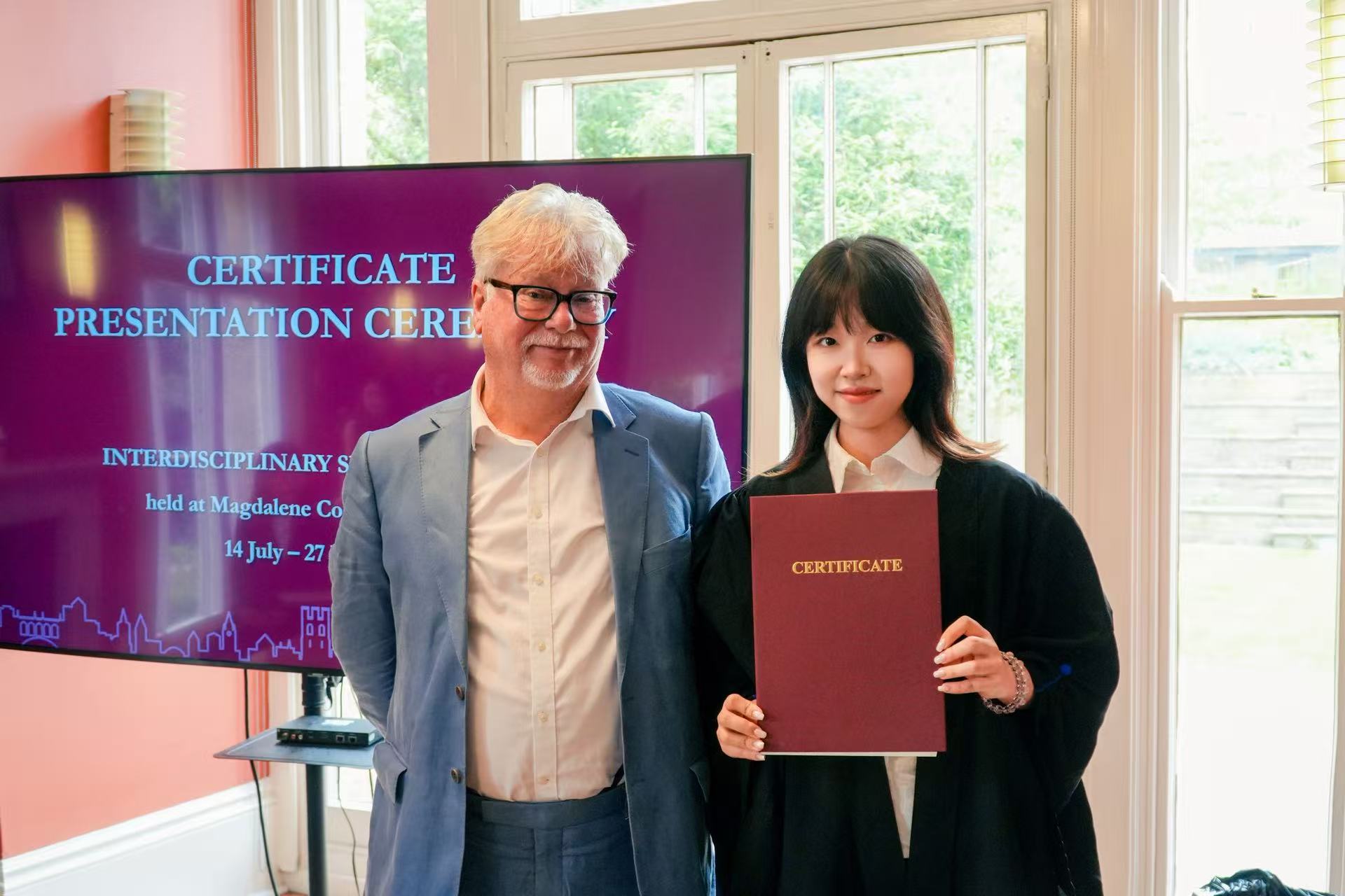 这个暑假,我参加了剑桥大学为期两周的领航计划项目,课程内容涵盖哲学、教育、历史、艺术等多个领域,既有深度的学术讨论,也有跨文化的交流体验。在课堂上,我们探讨了幸福、教育公平、人工智能与艺术等议题,让我深刻体会到不同学科视角下思想的碰撞与视野的拓展。老师们引导我们从哲学、社会学到历史文化多角度思考,使我认识到问题往往没有唯一答案,而是需要多元理解。课余的文化参访则让我在真实的历史与人文氛围中进一步加深了对知识的体会。在全英文的学习和交流环境中,我的语言表达与沟通能力也得到了提升,更重要的是,我结识了来自不同学校不同年龄的朋友。这段经历让我收获了学术启发、语言进步与成长,也坚定了继续拓展国际视野的目标。