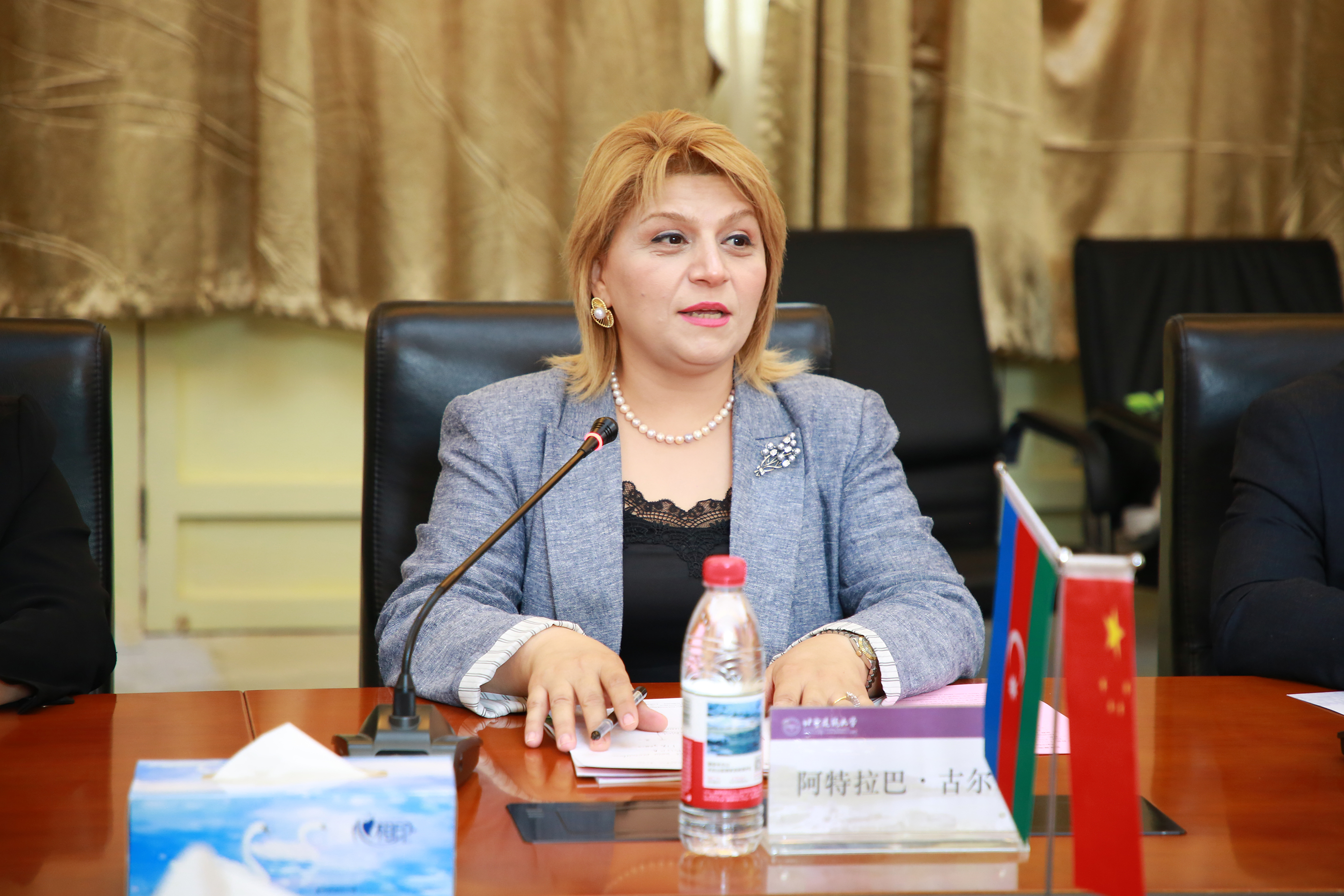 的热情接待,并转达了雅古布·皮里耶夫校长的问候。她讲到,阿塞拜疆和中国两国视彼此为优先、可靠、合作共赢的战略伙伴,有良好的合作基础,阿方高校历来重视与中国高校的合作与交流。她指出,两校国际化发展理念相同,专业发展契合、合作领域广泛, 尤其在智慧城市、绿色能源、人工智能等领域有很大的合作空间。她希望借助当下良好的发展环境与合作前景,以本次会谈为契机, 推动双方更多专业学院和科研中心的紧密交流,在学生长短期交流、教师互访、联合科研等方面开展深层次合作交流。