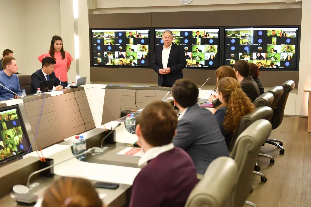 4月11日下午,第二期中国公路建设领域技术交流活动开幕。俄罗斯国家公路公司主席维亚切斯拉夫·佩图申科、第一副主席科瓦尔·伊戈尔携150余名俄方代表出席了开幕式。活动由国际化发展研究院(国际教育学院)副院长丁帅主持。