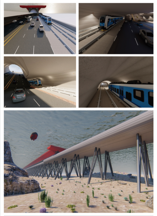 在数字化结构设计方向,来自安徽建筑大学的吴飞羊、叶俊瑶、王迅周、李彦锴和孙文展示了作品“跨海峡两用立式浮桥”,团队创新出下挂浮管隧道的装配式动力舟桥,优化设计单元体,实现了桥隧互通、桥隧合并,桥面通车,隧道通轨等多种形式的桥梁结构以满足各类交通需要。英国东伦敦大学的Mathura Mahadevan、Jaykumar Lakhani、Saru Prajapati、Waleed Anwar和Briston Joseph关于“伦敦格罗夫纳新钢缆拱桥”的设计,融合了不同的设计理念,包括创新、美学、易于建造和施工,以及可持续发展,也兼顾,安全性、适用性、环境可持续性、低碳发展和可建造性。