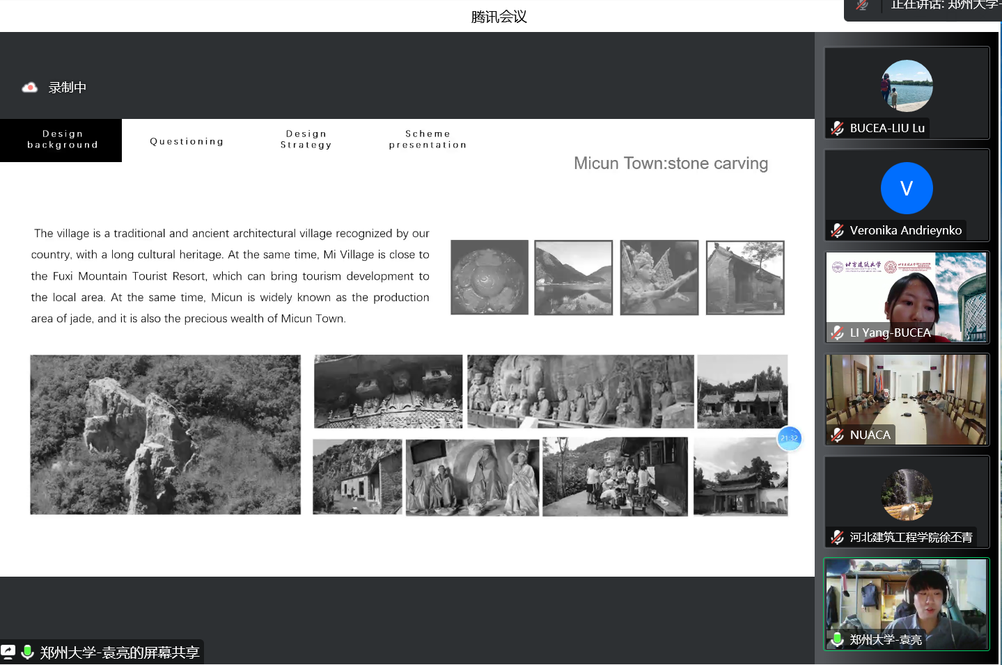 在数字化建筑设计方向,来自俄罗斯圣彼得堡国立建筑大学的Veronika Andriyenko介绍了作品“设有客运枢纽站的索尔塔瓦拉多功能社区中心”。Veronika根据索尔塔瓦拉的城市特色——三角形广场,为被铁路分隔形成的包含市中心、路堤和公园的综合区域,设计并实现交通、休闲和工作三种功能。郑州大学的袁亮、陈云祥、刘吉龙、郭亚婷和黄蕊分享了“城有园 垣无向——基于民族石刻艺术的铁路客运站设计”的设计理念,特别是站台雨棚采用参数化设计,雨棚形态即形似“伞”,体现其功能性,又形似“花”,寓意“一带一路,一路生花”。
