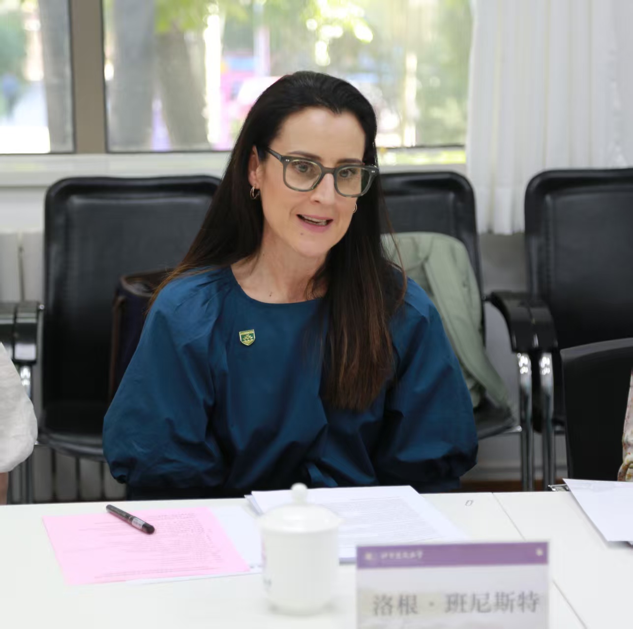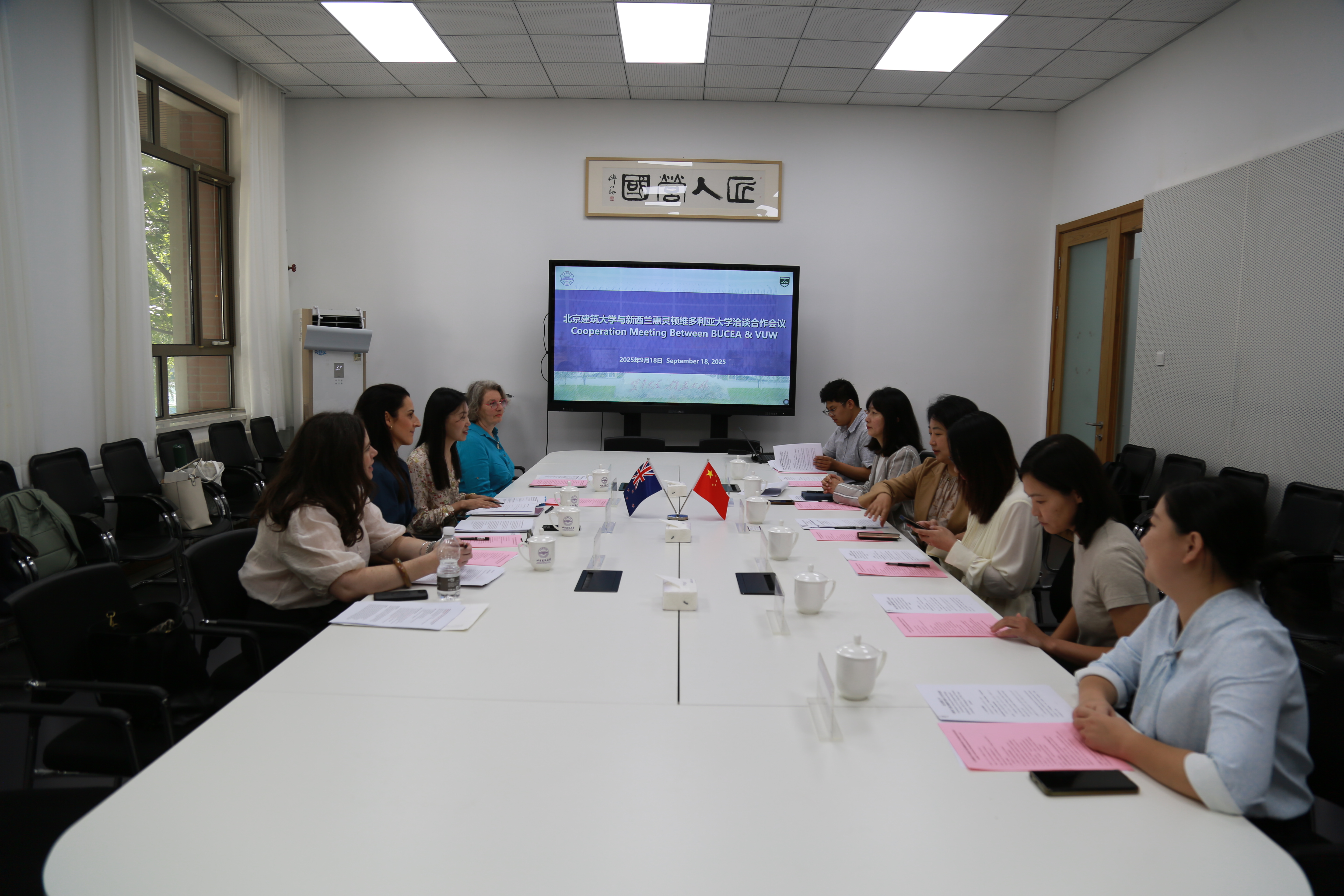 会上,惠灵顿维多利亚大学建筑与设计创新学院院长罗宾、国际办公室主任艾米、中国事务主管曹娟与色情短剧