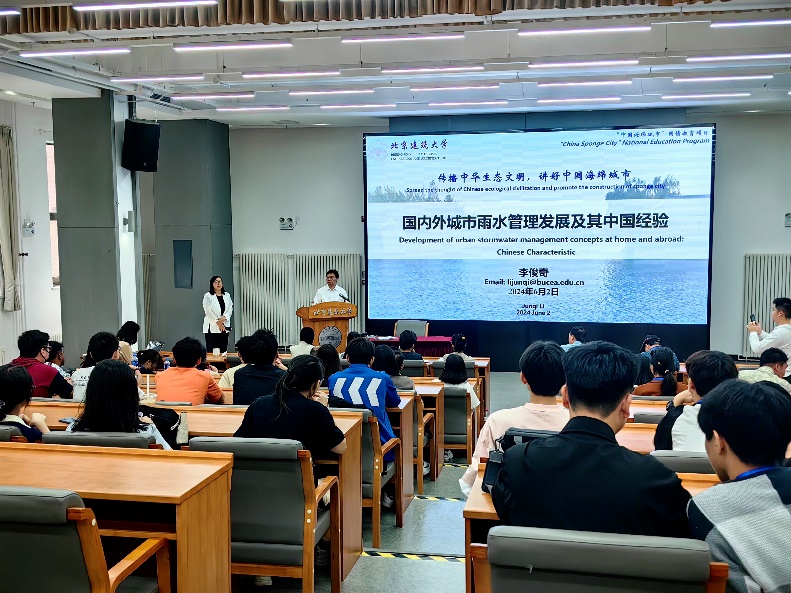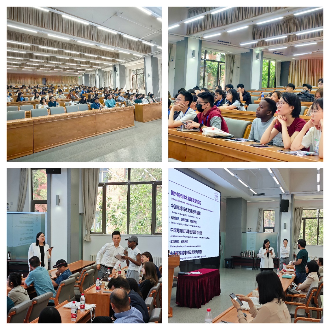 开班仪式结束后,李俊奇教授面向80余名长短期学员做了题为“国内外城市雨水管理发展及其中国经验”的学术讲座。他从国外城市雨水管理发展历程、中国海绵城市发展历程回顾、中国海绵城市建设成效与经验、未来海绵城市建设思考与展望四个方面进行了详细的讲解。讲座内容精彩纷呈、引人入胜。同学们积极参与、踊跃交流。