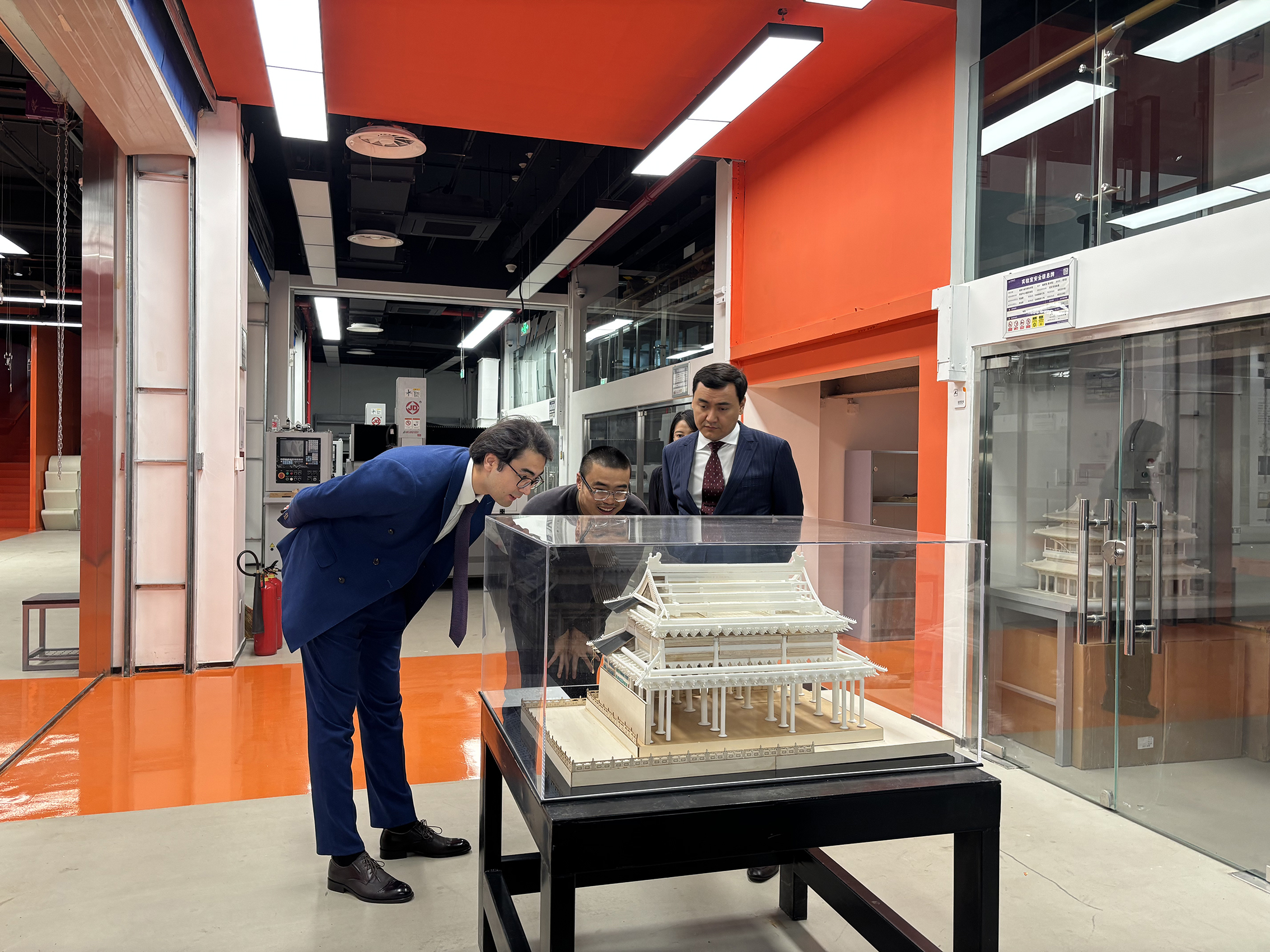 会前,库赛诺夫一行参观了西城校区建筑馆和建筑学院数字建造实验室、木作工艺实验室、建筑遗产保护技术实验室、光环境实验室等。