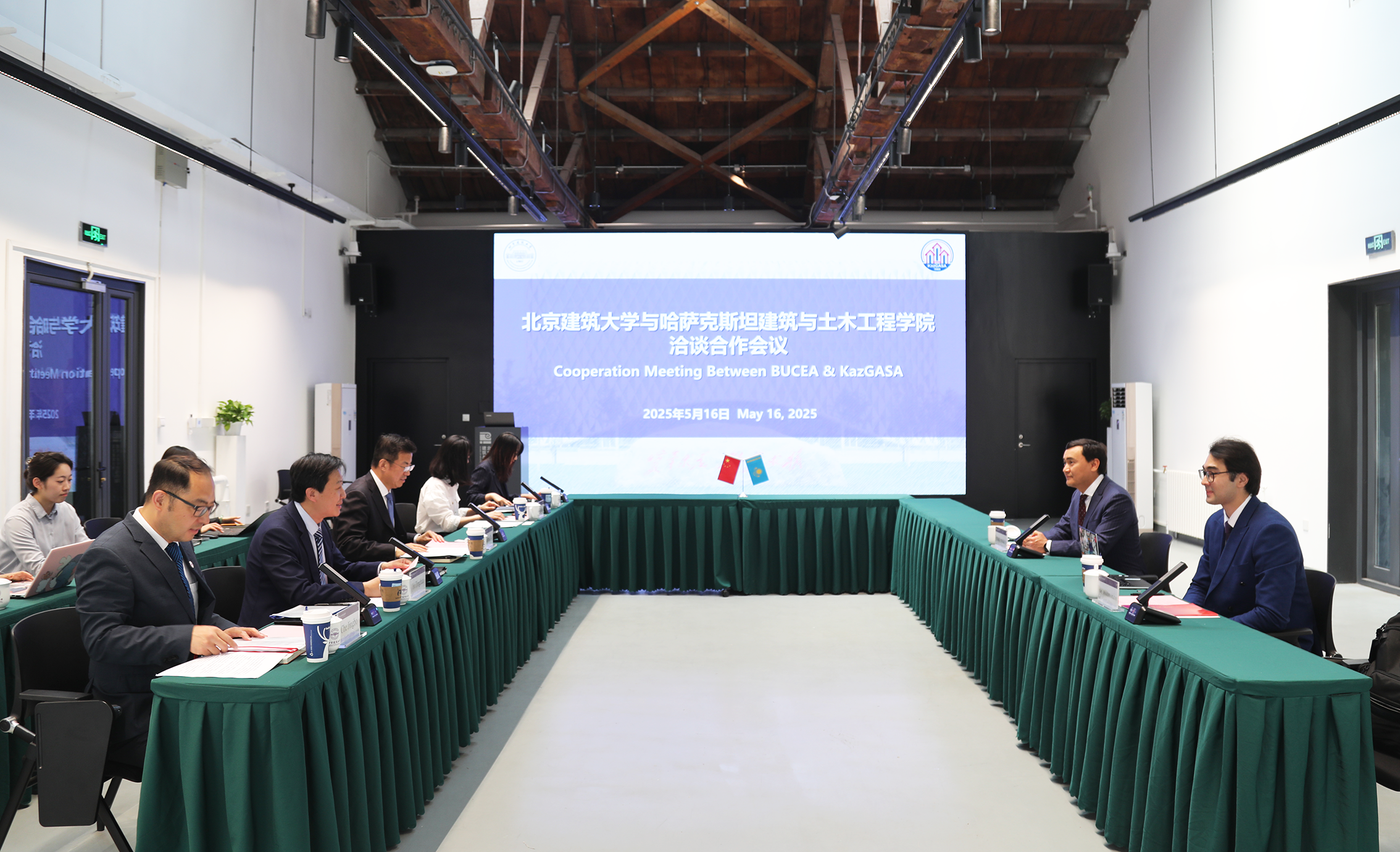 的热情接待表示感谢,并简要介绍了哈萨克斯坦国际教育集团和哈萨克斯坦建筑与土木工程学院近年来的发展概况。他指出,中国在高教科研领域发展成就举世瞩目,是哈方学习和借鉴的榜样。学校高度重视与北建大等中国高校的合作关系,希望双方加强顶层设计,把握发展机遇,聚焦师生交流、科研合作与联合办学三大核心领域,促进优势互补与资源共享,尽快推进合作项目落地,为哈中永久全面战略伙伴关系注入新内涵。库赛诺夫表示,哈萨克斯坦建筑与土木工程学院将与北建大一道,全力办好2025年联盟会议暨论坛,推动相关合作成果纳入政府机制,共同打造“教育—科技—产业”深度融合的全方位多领域交流合作平台,更好地推动“一带一路”共建国家高等教育事业发展,促进区域开放合作。
