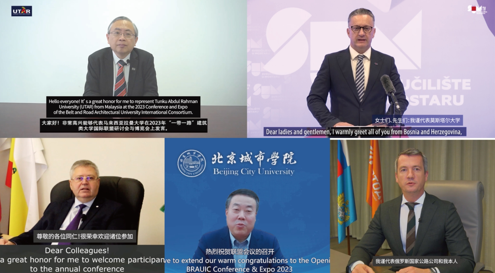此外,马来西亚拉曼大学校长尤芳达(Ewe Hong Tat)、波黑莫斯塔尔大学校长托米奇(Zoran Tomić)、俄罗斯莫斯科理工大学梁赞分校校长谢尔盖耶维奇(Yemets Valery Sergeevich)、北京城市学院校长刘林、俄罗斯国家公路公司第一副主席伊戈尔(Igor Koval)以视频形式参会并致辞。