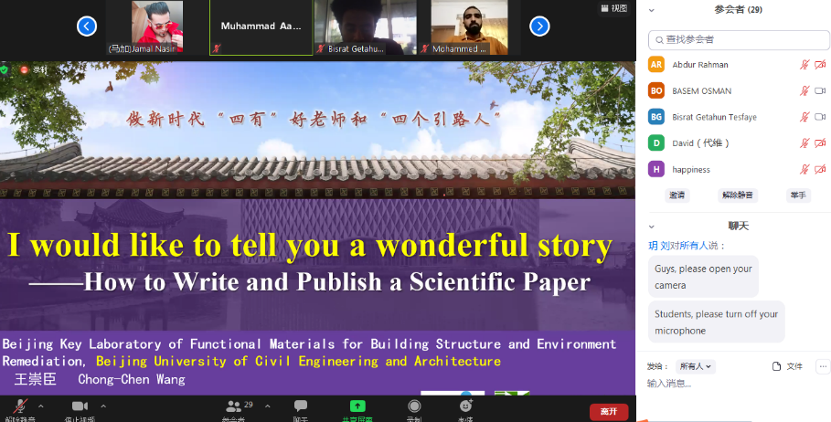 2020年12月21日和2021年1月15日,国际化发展研究院(国际教育学院)分别邀请芬兰瓦萨大学吕晓姝教授和环能学院王崇臣教授为全体在读全英班国际学生做了“漫谈学术论文写作与发表”系列线上学术讲座。